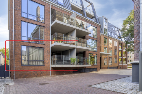 Binnen word je verrast door een lichte, royale L-vormige woonkamer. Aan de voorzijde de knusse zithoek met uitzicht op de straat; aan de achterzijde de eethoek die in open verbinding staat met de moderne keuken. Deze strakke keuken met zwart front en stoer composiet werkblad is niet alleen een lust voor het oog, maar ook volledig uitgerust met alles wat je nodig hebt: een inductiekookplaat, oven, vaatwasser en afzuigkap.